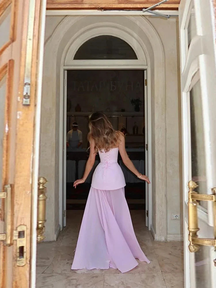 Zuzanna | Sukienka dla kobiet bez ramiączek z rozcięciem, długa, na wesele